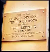 Plaque commémorative posée sur la façade du Golf-Drouot.