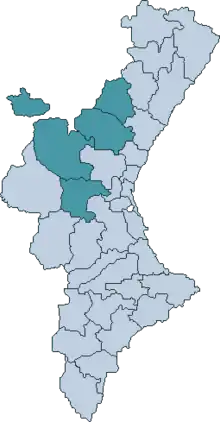 - Rincón de Ademuz (comarque enclavée entre la province de Teruel et celle de Cuenca)