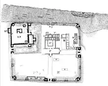 ![]() Fort de Kapersburg avec la phase de réduction de l'époque du limes tardif (h. dr.) |