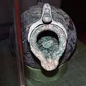 En 1975, on a trouvé dans le puits d'une villa rustica près de Heddernheim à Francfort-Schwanheim le squelette d'un homme gracile d'environ 20 ans couché sur le dos. Le crâne montrait des traces de coups de sabre ; le squelette avait perdu tous les os des pieds et la plupart de ceux des mains. Dans le puits, daté par des monnaies d'après 228/229, se trouvaient aussi une image cultuelle de taureau ainsi qu'un nombre inhabituel de dents de cheval, si bien que l'on considère cette découverte comme une inhumation exceptionnelle rituelle[96],[97].