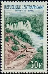 Les chutes de Boali, sur un timbre-poste centrafricain dessiné et gravé par Charles Mazelin.