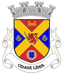 Description Héraldique : Dans le chef, sur un champ de gueules, un château clos d'or représentant l'entreprise qui dans les années 1940 a donné naissance au quartier. Sur le champ d'azur, sur le flanc dextre et sinistre sont assises deux cornes d'or, représentant la force, la dignité et la ténacité dans les buts, appelant à tous les peuples, à l'avant et à l'arrière social, économique et politique, à s'engager dans la construction du futur. Au cœur, en lignes de croisement en sautoir d'or, représentant la convergence et la diversité des chemins, est assis un lion rampant de gueules tenant une épée de sinople pointant vers l'avant, tout en regardant vers l'arrière, représentant la persistance dans l'espoir et le courage dans la défense constante de la justice. Au contre-chef, sur le champ de gueules, une splendeur d'or et d'argent avec un écusson d'azur renfermant 5 étoiles d'or, représentant la Constellation de la Croix du Sud. Au-dessus des armoiries, une couronne murale d'argent avec 4 tours, représentant le statut de district de Cidade Lider. Dans un lambeau d'argent, libre sur l'écu, est inscrite aux extrémités d'azur, la légende « A Deo lex, a rege lex » (La Loi vient de Dieu, la Loi vient du Roi). Et dans le Centre, également d'azur la légende Cidade Lider[3],[4].