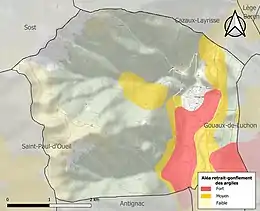 La commune est vulnérable au risque de mouvements de terrains constitué principalement du retrait-gonflement des sols argileux[35]. Cet aléa est susceptible d'engendrer des dommages importants aux bâtiments en cas d’alternance de périodes de sécheresse et de pluie. 23,1 % de la superficie communale est en aléa moyen ou fort (88,8 % au niveau départemental et 48,5 % au niveau national). Sur les 212 bâtiments dénombrés sur la commune en 2019, 71 sont en aléa moyen ou fort, soit 33 %, à comparer aux 98 % au niveau départemental et 54 % au niveau national. Une cartographie de l'exposition du territoire national au retrait gonflement des sols argileux est disponible sur le site du BRGM[36],[Carte 3].