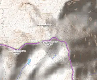 En versant sud-ouest de la cime de l'Agnel se situe le lac de l'Agnel (2 645 m).