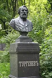 Le premier à être enterré à la Passerelle des écrivains fut Vissarion Biélinsky en 1848 et l'habitude fut prise d'y enterrer des membres de l'intelligentsia, souvent critiques à l'égard de la société de leur époque[2]. Ivan Tourguéniev demande à être enterré le plus près possible de son ami Biélinsky, mais il est inhumé un peu plus loin, dans une autre parcelle réservée à l'aristocratie, près de l'église du Sauveur. Le critique Nikolaï Dobrolioubov, Dmitri Pissarev, Saltykov-Chtchedrine, et Nikolaï Leskov y sont également enterrés.