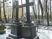 Tombes de Plekhanov au premier plan, de Biélinski (croix de marbre noir) et de Dobrolioubov