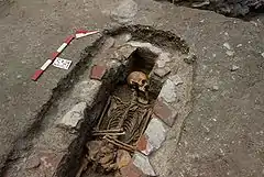 La présence à Vif d'un cimetière médiéval primitif est établie grâce aux fouilles entreprises en 1966 par l'Architecte honoraire des bâtiments de France, Raymond Girard, autour de l'église Saint-Jean-Baptiste[2]. Cette série de fouilles permet de révéler la présence de treize sépultures au nord de l'église, dans l'unique zone libre de construction devant la sacristie. Les inhumations découvertes présentaient des caractéristiques de nécropoles régionales datant de la fin du Xe siècle au milieu du XIIIe siècle : certaines d'entre-elles furent rapportées à l'époque carolingienne, tandis que deux autres semblaient plus récentes, datées du XIIe siècle. Dans ces fouilles, quelques autres objets sont découverts, notamment des tessons de céramique romaine, un poids de tisserand antique et des fragments de tegulae[2].