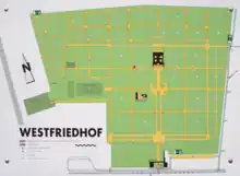 À ce jour, le cimetière de l'Ouest a le caractère d'un parc, typique des grands cimetières municipaux de Cologne, avec de larges avenues et de riches plantations d'arbres. Dans la zone du cimetière, il y a aussi plusieurs sections avec le carré des Roms et le carré musulman. Le crématorium urbain est également situé ici; il a été construit en 1937 et a également été le premier crématorium de Cologne. En décembre 2018, il a été décidé de le privatiser et de laisser l'entrepreneur néerlandais Die Facultatieve exploiter le crématorium à l'avenir[1]. Immédiatement au nord du cimetière de l'Ouest, se trouve une zone boisée qui a été prévue comme une zone d'expansion possible. Adjacent au cimetière de l'Ouest, se trouve le cimetière juif de Bocklemünd.