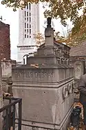 | Famille Debray | famille de meuniers de Montmartre. Nicolas-Charles Debray installa au pied du moulin Blutte-Fin une guinguette et un bal et baptisa l'ensemble « moulin de la galette ». La tombe familiale est surmontée d'un petit moulin rouge qui donna ensuite son nom à la guinguette devenue par la suite le cabaret Moulin-Rouge | ![]() |