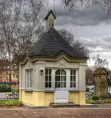 L'on n'avait pas prévu au départ de construire un funérarium, car la plupart des défunts étaient à l'époque d'abord veillés à domicile avant d'être enterrés au cimetière. Mais avec la croissance de la population, et surtout d'une population ouvrière, des raisons d'hygiène imposent l'usage de veiller les morts dans un funérarium avec des pièces aménagées. Cependant à cause du conflit avec le gouvernement prussien il a fallu plusieurs années que le bâtiment puisse être construit. Le funérarium octogonal à droite de l'entrée a finalement été inauguré en 1912.