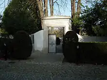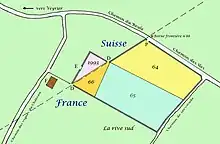 Ce n'est toutefois que le que les douanes suisses donnent leur accord pour que l'entrée principale du cimetière s'effectue par le territoire helvétique afin d'en faciliter l'accès depuis Genève. Le mur d'enceinte, qui pour partie longe la frontière, pour partie se trouve en territoire suisse, devra disposer d'une ouverture de deux mètres de large, là où la frontière le coupe, afin de permettre le libre passage des douaniers[3].