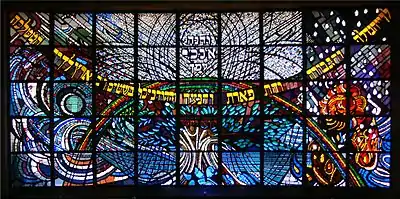 Dans le futur, les extensions se feront sans aucun doute côté genevois, sur les parties restées vierges du cimetière. La loi cantonale de 1876 — qui interdisait toute implantation de cimetières confessionnels — a en effet été modifiée en 2005. En 1980, l'oratoire israélite a fait l'objet d'une première grande restauration, avec la pose d'un immense vitrail sur la partie arrière de l'édifice. Conçu par l'artiste suisse Régine Heim[1], ce vitrail d'environ 10 m x 5 m, est une représentation — dans un style contemporain — de la Genèse. Monté sur une structure métallique quadrillée, le vitrail est composé de roches de verre et autres cristaux — tous saillants — insérés dans des dalles en mortier. L'ensemble forme ainsi une formidable mosaïque aux reliefs prononcés où la lumière s'exprime à travers la variation des couleurs obtenues, des plus vives aux plus nuancées[9].