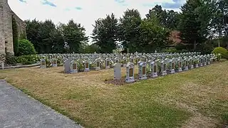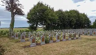 Les tombes sont disposées en doubles rangées, généralement dos à dos, avec une séparation en parterres fleuris. Il y a 508 soldats inhumés dans le cimetière pour 509 tombes ; en effet, l'une des tombes ne comporte aucun corps et six des corps n'ont pu être identifiés[3].