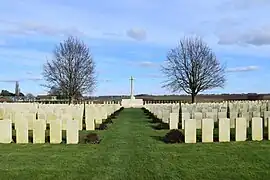 Le cimetière britannique est situé en bordure de la route départementale 929 qui relie Amiens à Saint-Quentin, en face du bois du Sart. 1 860 soldats y reposent parmi eux, 859 Britanniques, 984 Australiens, 9 Canadiens, 6 Néo-Zélandais et 2 Sud-Africains. Plus de 360 ne sont pas identifiés.