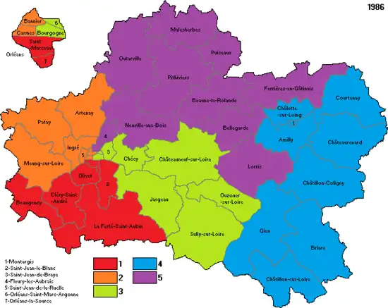 | VIe | Gaston Girard | RPR | Conseiller général d'Ouzouer-sur-Loire Mandat écourté à la suite d'une dissolution parlementaire décidée par François Mitterrand. | ||