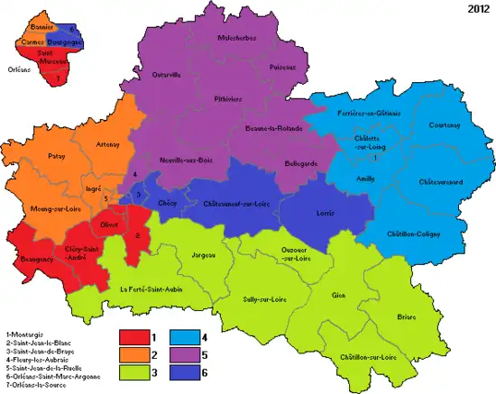 À la suite du redécoupage des circonscriptions législatives, la circonscription perd deux cantons. Celui de Ferrières-en-Gâtinais rejoint la 4e circonscription du Loiret tandis que celui de Lorris rejoint la 6e circonscription du Loiret. Ce nouveau découpage s'applique pour la première fois à l'occasion des élections législatives de 2012.
