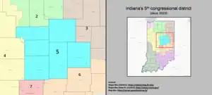 Le 5e district congressionnel de l'Indiana est un district de l'État américain de l'Indiana qui occupe le côté nord d'Indianapolis ainsi que ses banlieues est et nord, notamment Marion, Carmel, Anderson, Noblesville, Fishers et certaines parties de Kokomo. Ce district de banlieue est majoritairement blanc et est le district congressionnel le plus riche de l'Indiana, par revenu médian.