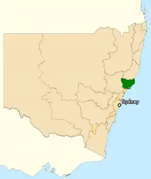 La circonscription de Paterson (en vert) au nord de Sydney en Nouvelle-Galles du Sud.