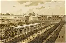Il fit construire par Victor Louis de 1786 à 1790 l’actuelle Comédie-Française à l’angle sud-ouest de son terrain. Il eut encore recours à lui pour construire en 1787 un cirque en dur au centre du jardin pour organiser des courses de chevaux. C'était un édifice en forme d'hippodrome à l'antique avec 72 colonnes ioniques et des statues, revêtu de treillage, de 100 m de long sur 16,50 m de large, en partie enterré au centre (4,30 m) pour ne pas obstruer la vue sur les galeries. 40 boutiques dans la partie enterrée annonçaient nos centres commerciaux actuels [1].