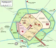 Durant l'Antiquité tardive, le cirque romain se trouvait à proximité du palais impérial - aujourd'hui disparu - et des remparts de la ville.