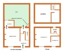 Les maisons sont construites de manière à respecter les principes d'« aération, salubrité et hygiène »[15]. Elles comportent généralement, au rez-de-chaussée, un vestibule, une pièce à vivre et une cuisine en avancée sur la cour ; l'étage, surmonté de combles, est divisé en deux chambres, soit un total de 71 m2 de surface[14].