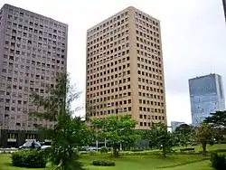 Toutefois, les ministères des Affaires Étrangères et de la Défense, ainsi que d'autres qui disposaient de locaux propres avant l'achèvement des tours, sont maintenus à l'écart de la cité administrative plus au sud du Plateau[4].