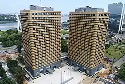 La construction des deux premières tours (A et B) débutent au début des années 1970 pour s'achever en 1977. Elles s'élèvent toutes deux à une hauteur de 70 m. À la suite de ces deux premières, la construction de trois nouvelles tours (C, D et E) est lancée peu de temps après l'achèvement des tours A et B. Ces trois tours seront achevées en 1984. Tandis que les tours C et E s'élèvent à une hauteur de 100 m, la tour D culmine à plus de 120 m, ce qui en fait l'édifice le plus élevé du pays[2].