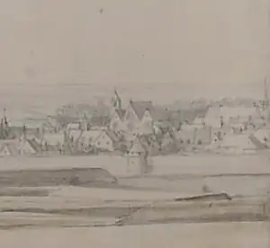 La Cité est visible à gauche de cette image, séparée de la ville par un mur longé par le Crinchon. | |