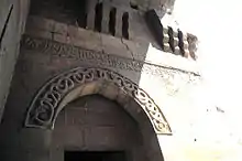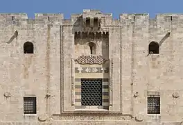 Les défenseurs pouvaient verser des liquides chauds sur les attaquants à travers les mâchicoulis pratiqués dans les murs. Les défenseurs disposaient également de moyens secrets pour prendre à revers les attaquants. Le chemin principal était décoré de reliefs figuratifs. Les Mamelouks construisirent plus tard leur salle du trône sur ces bâtiments ayyoubides[14].