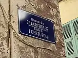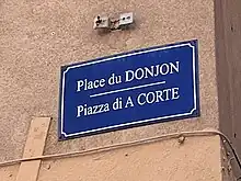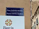 - Plaques de rues bilingues corse-français dans les rues de la Citadelle de Bastia