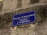 Cette rue a conservé la mémoire des sœurs turchine, devenues en français les "turquines, appelées ainsi à cause de leur habit bleu. L'ancien couvent des Turquines se trouve en bas de la rue de l'Evêché.