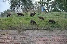 En matière de gestion différenciée, un petit troupeau de moutons de Soay est utilisé pour la gestion restauratoire de la pelouse sommitale récemment restaurée des fortifications. Ce mouton, léger et rustique, très à l'aise sur les pentes remplace idéalement les engins mécaniques (écopastoralisme) et, tient aussi un rôle de corridor écologique ambulant en transportant des graines et propagules (pelage, tube digestif, sabots).