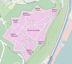 L'édifice du Parlement du Québec, ainsi que plusieurs autres édifices gouvernementaux et grands hôtels sont situés tout près de cette citadelle dite enfoncée ou de surface plane, typique de la fin du XVIIIe siècle et du début du XIXe siècle. Elle a été désignée lieu historique national du Canada en .