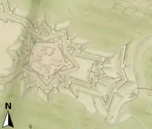 - Ce second glacis n'est cependant pas doté de traverses sur son chemin couvert.