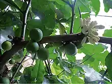 Plante épineuse[8], les feuilles alternes sont pennées. Fruit vert, aromatique et petit (2,2 cm)[9] signalé comme mangé frais[10].