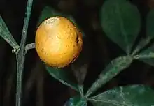 Un arbuste forestier épineux[8] (une ou 2 épines à la base des feuilles)[9] jusqu'à 6 m de haut avec très petites fleurs blanches[10] et fruit rouge de 2,5 cm de diamètre pulpe gélatineuse avec 4 graines. Les feuilles souvent 5-foliolées aux pétioles largement ailés[11]. La plupart des fruits contiennent de grosses graines et très peu de pulpe. L'étiquette originale de M. Gentil sur le spécimen de l'herbier de Washington note «fruits délicieux», c'est la seule mention d'un fruit comestible[12] mis à part la variété Lacourtiana.