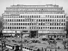 La construction de l'immeuble est précédée d'un concours architectural auquel participent Ragnar Östberg, Albin Stark, Cyrillus Johansson et Ivar Tengbom. Kreuger décide de confier le projet à Albin Stark et Cyrillus Johansson, mais leur proposition ne verra finalement jamais le jour. Le maître d'ouvrage insiste en effet pour que les façades soient recouvertes de marbre, un matériau que Cyrillus Johansson se refuse absolument à utiliser[1]. C'est donc finalement Ivar Tengbom qui est chargé de la réalisation de l'immeuble. Le résultat est typique de l'architecture fonctionnaliste. Les façades sont caractérisées par de longues rangées de fenêtres identiques, sans regroupement. Les matériaux utilisés : marbre, acier inoxydable et verre leur donne un aspect fastueux. La seule variation se situe au sommet, les trois derniers étages formant une structure en escalier en retrait des façades.