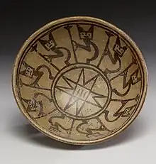 Les récipients funéraires diffèrent sensiblement des vases en céramique d'utilisation quotidienne ; de belle facture, ils sont décorés avec des peintures en négatifs noir et rouge. Les motifs géométriques prédominent. Les pièces les plus courantes sont les coupes à hauts pieds, de formes très diverses, dont il existe des exemples avec doubles et triples coupes. Sont également communs les vases globulaires ornés de figures d'animaux sur les bords.
