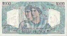 - Le billet de 1000 francs type 1945 modifié 1956 pour l'Institut Afrique Occidentale Française et le Togo