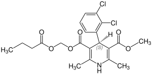 | Nom UICPA | (RS)-4-(2,3-dichlorphényl)-2,6-diméthyl-1,4-dihydropyridin-3,5-dicarboxylate de 5-O-(butanoyloxyméthyle) et de 3-O-méthyle |