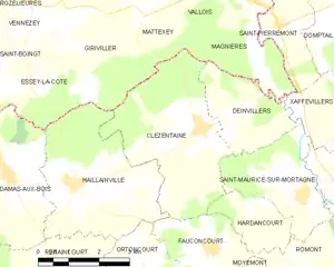 Clézentaine est située à 12 km au nord-ouest de Rambervillers et en limite du département de Meurthe-et-Moselle.