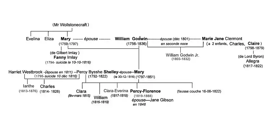 Arbre généalogique des Godwin, Shelley, Clairmont