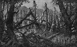 - Lors des défrichements, l'homme crée une clairière de défrichement autour du lieu initial de son installation, laissant non défrichées les zones plus éloignées. Ceci se vérifie aussi bien lors des grands défrichements dans l'Europe du début du Moyen Âge que dans les forêts tropicales actuellement autour des noyaux d'habitat des populations autochtones (forêt amazonienne par exemple).