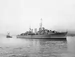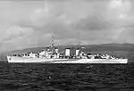 | Armement | 6 canons de 102 mm QF Mark XVI en trois affûts doubles 1 affût quadruple Pom-Pom 8 mitrailleuses de 12,7 mm en deux affûts quadruples remplacés ultérieurement par 12 canons de 20 mm 156 mines |