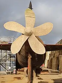 Elle a propulsé le sous-marin Agosta de 1977 à 1997, avant l'arrivée dans la flotte des sous-marins à propulsion nucléaire. Cette hélice de 2 tonnes est en bronze, elle comporte 5 pales et mesure de 2,7 m de diamètre.