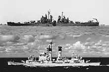 Après la capitulation japonaise en , les croiseurs des classes Cleveland[1] et Baltimore [2] qui avaient combattu, ont été progressivement placés en réserve, de sorte que ne restaient actifs vers -48, que quatre croiseurs de la classe Baltimore et un de la classe Cleveland qui n'avaient pas participé à la guerre, ainsi que les croiseurs des classes Fargo et Oregon City[3], bientôt rejoints par ceux des classes Des Moines[4] et Worcester[5].