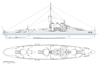 | Blindage | ceinture = 300 mm pont = 50 mm barbette = 284 mm tourelle = 250-300 mm casemate = 160-180 mm Kiosque = |
