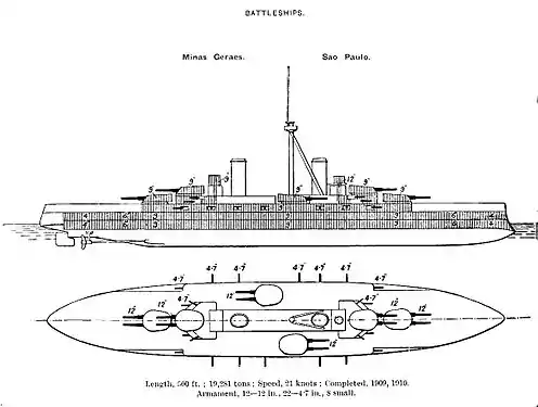 Un appel d'offres pour deux dreadnoughts (avec une option sur un troisième si le Brésil commandait un troisième cuirassé) et douze destroyers fut lancé en 1908[11],[12],[13]. Pour que les dessins reflètent les techniques les plus modernes, les demandes étaient volontairement vagues[11],[14].