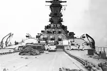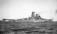 | Armement | initial : 9 canons de 460 mm (3x3)[1] 12 canons de 155 mm (4x3)[1] 12 canons de 127 mm (6x2)[1] 24 canons de 25 mm (8x3) 4 mitrailleuses de 13,2 mm (2x2)[1] |
