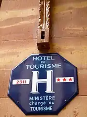 La classification est signalisée sur les hôtels classés de une à quatre étoiles par des panonceaux rectangles bordeaux et argent mat[N 1] se substituant aux panneaux octogonaux bleu marine et leurs étoiles rouges sur fond blanc, la catégorie des cinq étoiles étant distinguée par des panonceaux or[16].